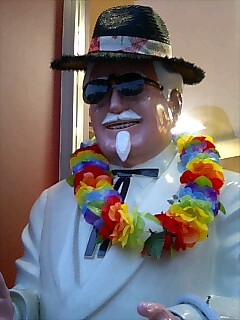 カーネル・サンダースはレイとサングラスでハワイバージョン。