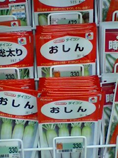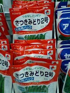 また、最近の野菜の種は面白い名前のものが多いのです。「さつきみどり2号」(いんげん)「おしん」(だいこん)「惚レタス」(レタス)「達者de菜」(ニラ)など。