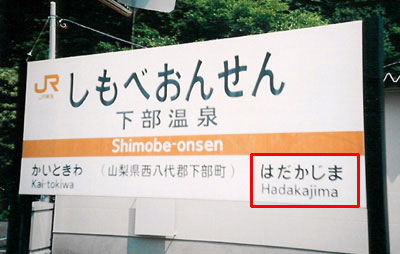 下部温泉の隣駅はなんと「はだかじま」。裸の人たちがいる島?島の露天風呂とか?と思ったら「波高島」でした。しかし、海なし県の山梨に 「波高島」 というのも、また不思議です。