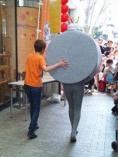 一方、全身タイツに上だけぬいぐるみのゆるキャラ「にしこくん」は後ろ姿がなんともシュールです。
