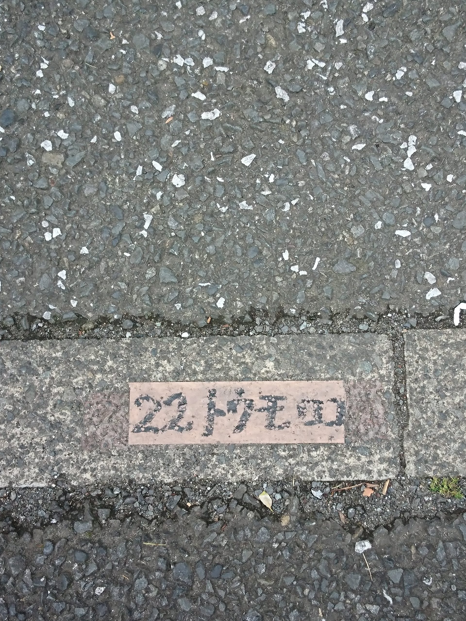「トウモロコ」とは、おそらくテキ屋さんのバミリ位置を示したもの。川崎大師にて。 「トウモロコシ」まで書ききれなかったんでしょうね。