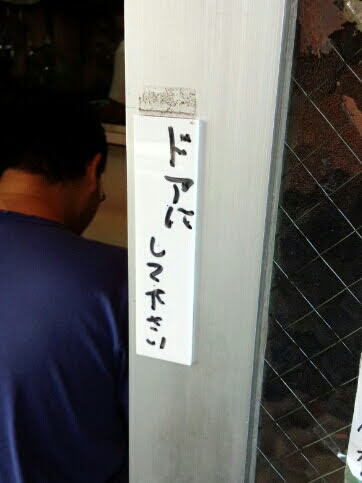 - 「ドアに してください」という張り紙。結局何すんねん!
